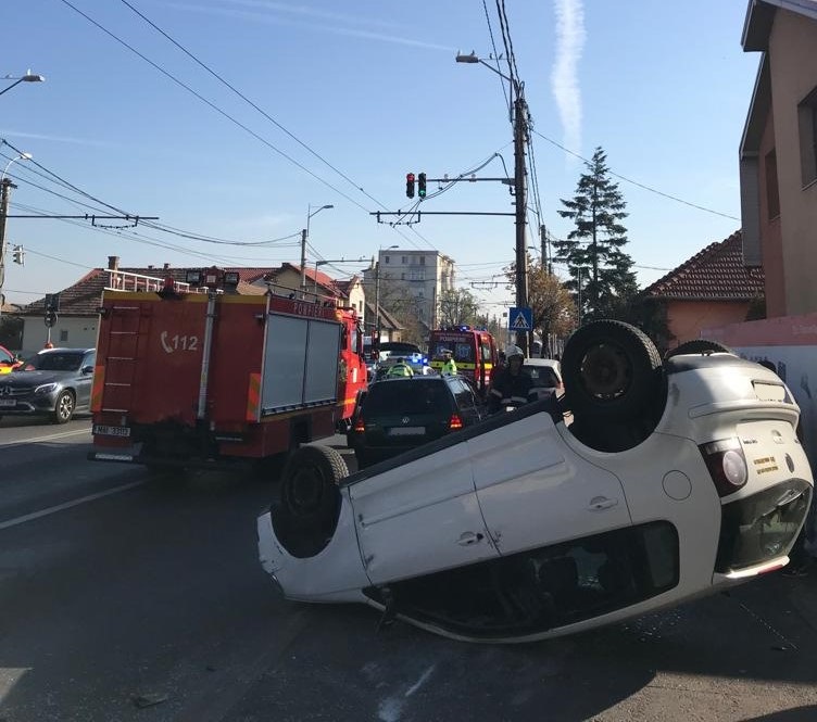 Două mașini de pompieri și un echipaj SMURD au fost alertate ca urmare a unui accident rutier, care a avut loc în jurul orei 10.40 pe strada Traian Vuia din mun Cluj Napoca.