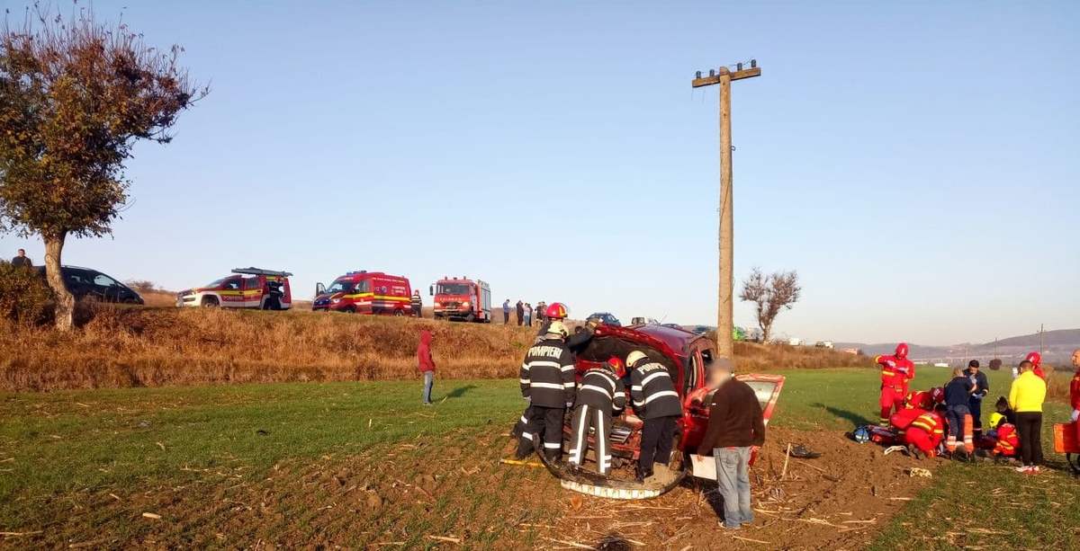 Au mai fost consultați de echipajele SMURD doi bărbați din autoturismul ieșit în afara părții carosabile, care au refuzat transportul la spital.
