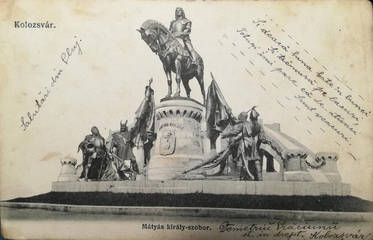 La 117 ani de la dezvelire, vă prezentăm macheta statuii din Cluj a lui Matia Corvin, într-o ilustrată expediată în urmă cu 112 ani.