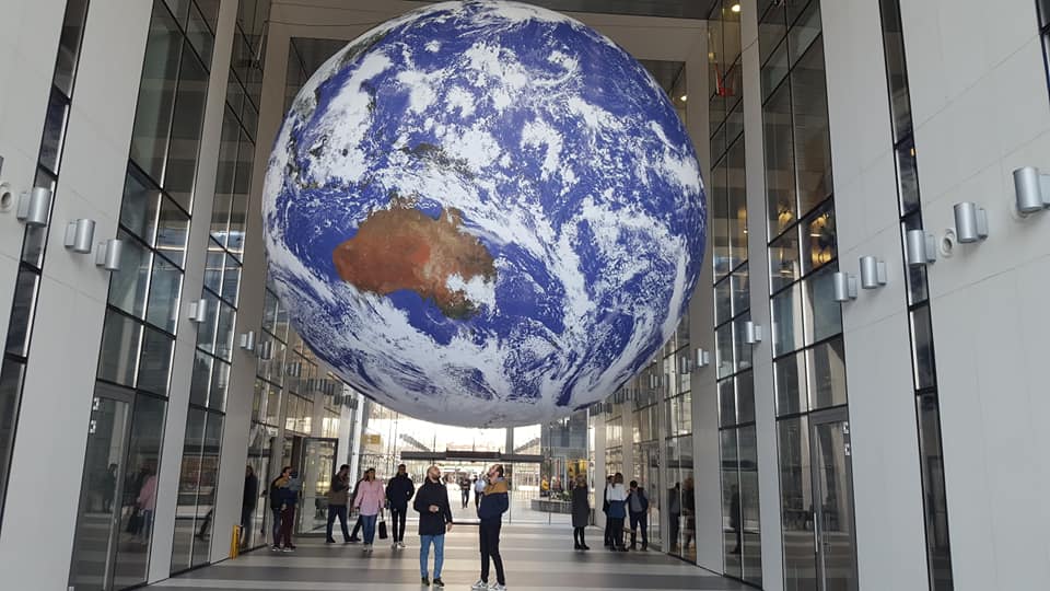 Pământul suspendat în aer este înfățișat de „Gaia” creația artistului britanic Luke Jerram și este adusă în premieră în România. Până acum pământul suspendat în aer a mai fost expusa doar la muzeul din Liverpool, unde oamenii stăteau la coadă pentru a-l vedea, sau în centrul Hong Kong-ului, China.