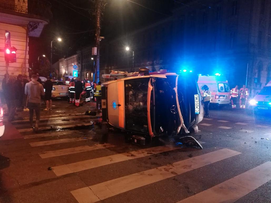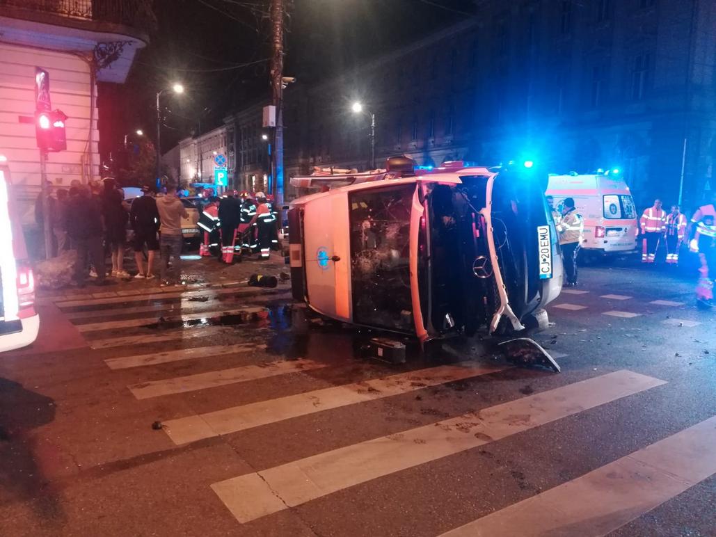 Ambulanța răsturnată în Cluj. Asociația Taximetriștilor din Cluj a transmis un punct de vedere cu privire la accidentul din 19 octombrie 2019 când o ambulanță a fost răsturnată în urma coliziunii cu un taximetru.