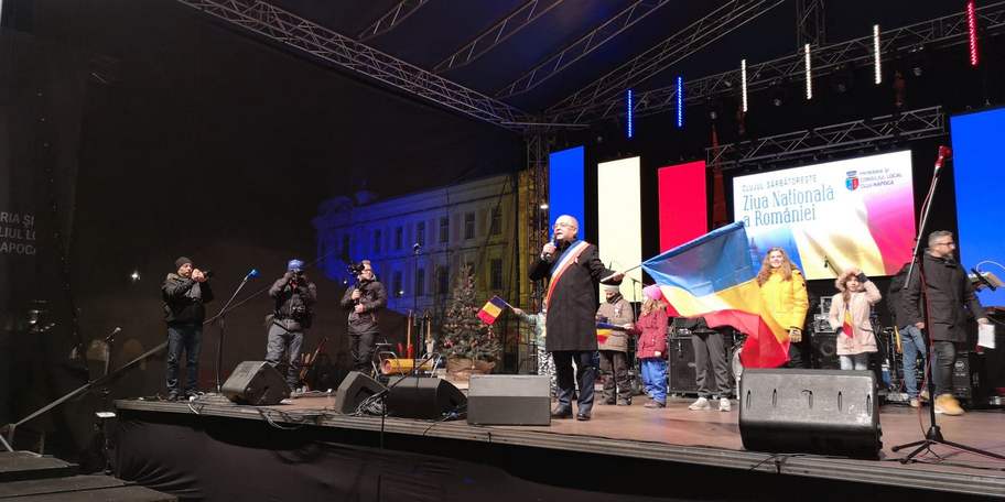 A fost aprins iluminatul de sărbători în Cluj. Primarul Emil Boc, ajutat de mai mulţi copii, au apăsat pe butonul care a pornit iluminatul festiv de sărbători. Mii de beculeţe s-au aprins în tot Clujul.