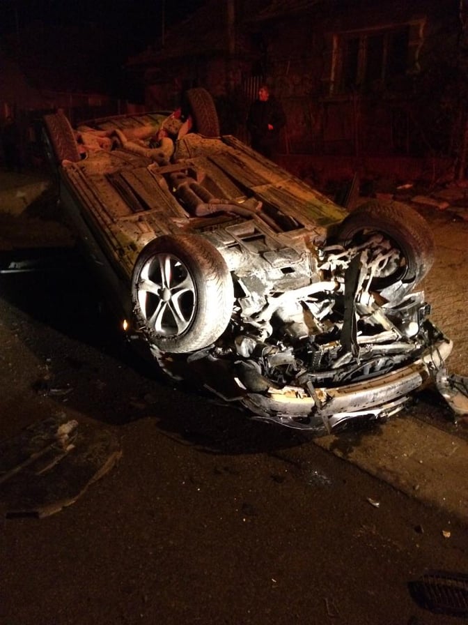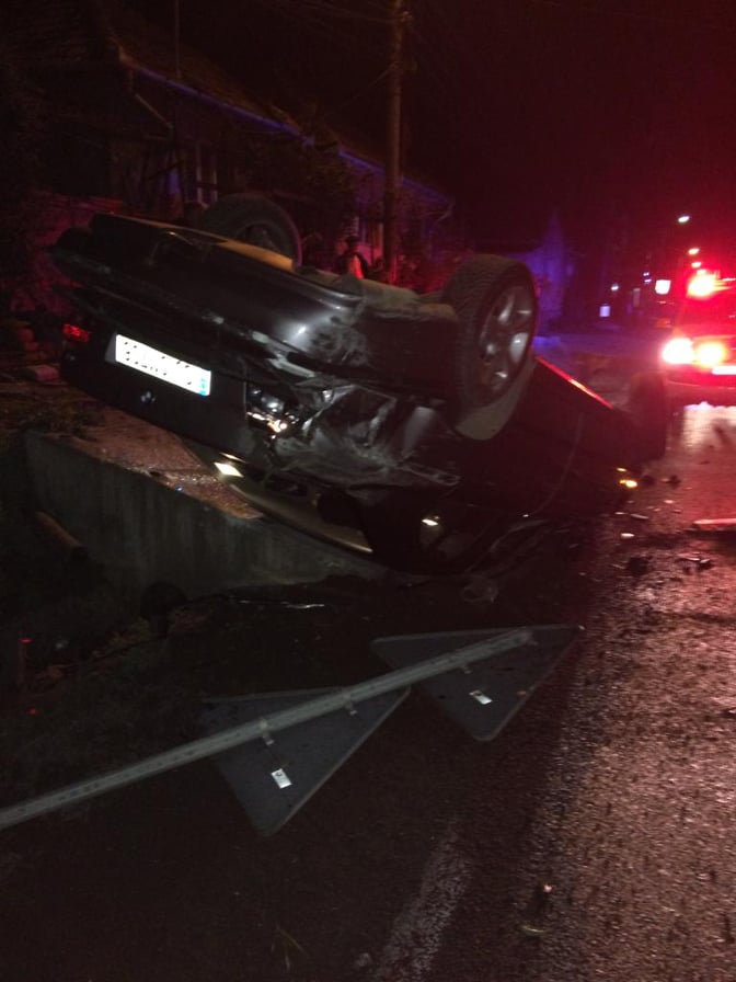 Accident în Dej. O maşină s-a făcut praf în această seară după ce s-a izbiz violent de un cap de pod pe str. Baia Mare din Dej.