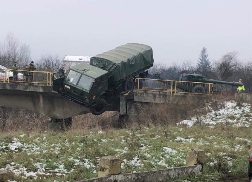 Camion militar suspendat pe pod în Dej. Incidentul a avut loc în această dimineață  pe strada Libertății din Dej, informează dejeanul.ro.