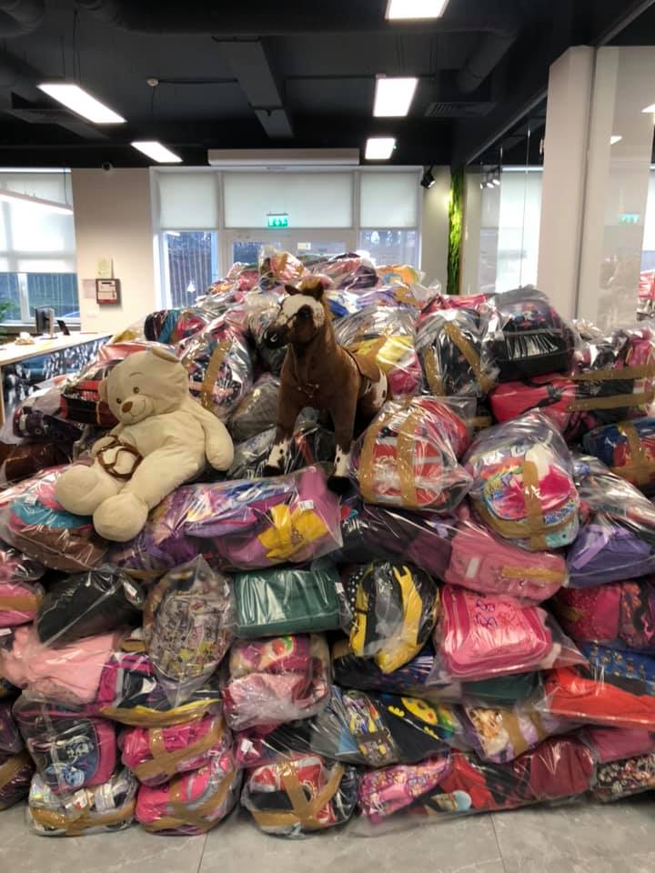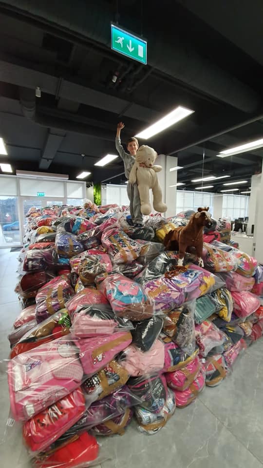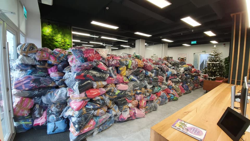 “Sediul Blitz inundat de ghiozdane! Am impachetat 980 de saci si am ajuns cu numaratoarea la 4961. 🎒🎒🎒🎒🎒🎒🎒🎒🎒🎒🎒🎒🎒