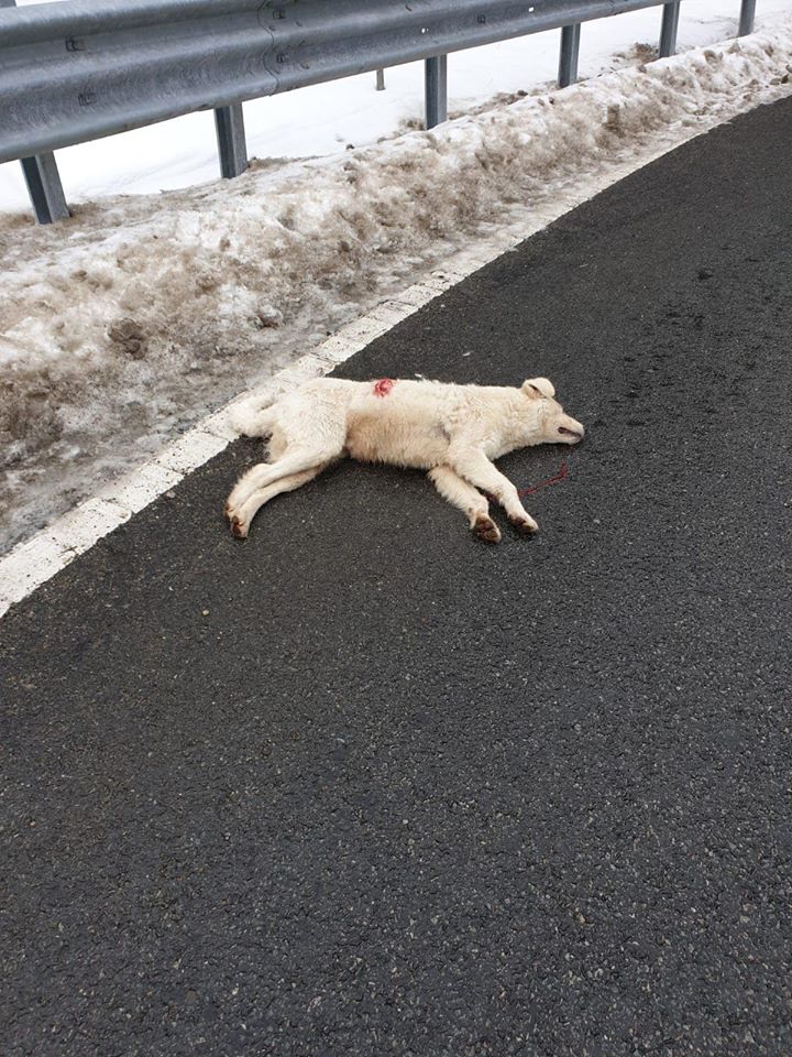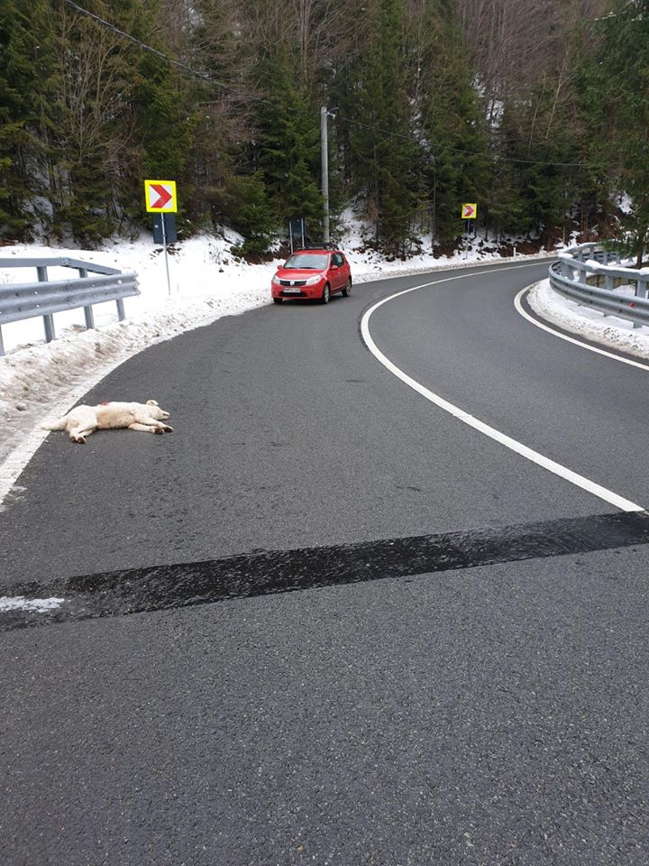 FOTO. Câine împuşcat pe drum în Maramureş. Mobilizare pentru prinderea criminalului!