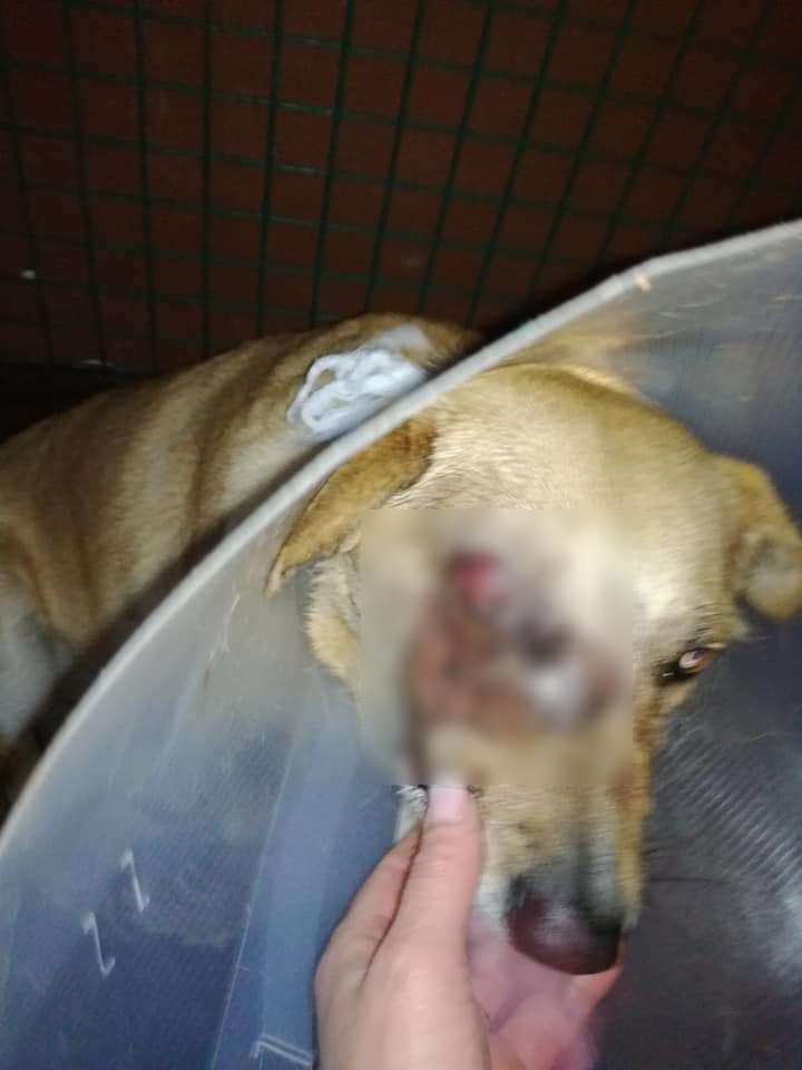 Câinele a fost operat de urgență, ieri, după ce a fost batjocorit de unul sau mai mulți sătmăreni, ce i-au băgat în gură o petardă aprinsă. Cazul a ajuns la Asociația Freelife, care a dus câinele de urgență la veterinar, unde a fost operat.