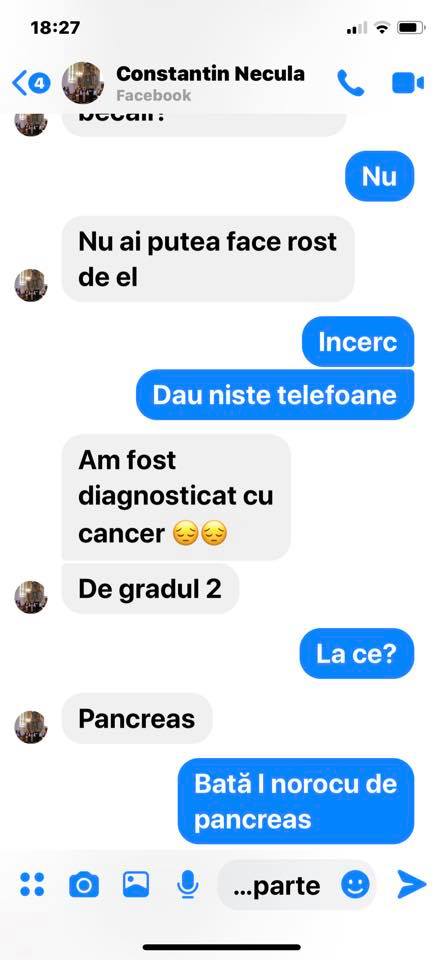 Imi spune ca a fost diagnosticat cu cancer la pancreas si are nevoie urgent se 87.000 de eu.