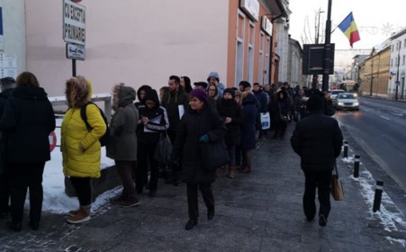 FOTO. Sute de clujeni au stat la coadă, pe ger, pentru locuri de parcare