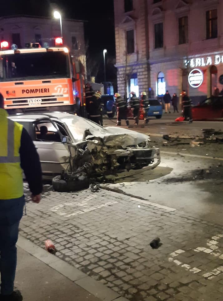 Tanarul in varsta de 21 de ani conducea auto dinspre gara inspre centru, pe strada Horea, a patruns pe contrasens si a intrat in coliziune frontala cu un auto condus din sens opus. In acest moment, conducătorul auto care circula regulamentar si doi pasageri din acelasi auto primesc ingrijiri de specialitate.